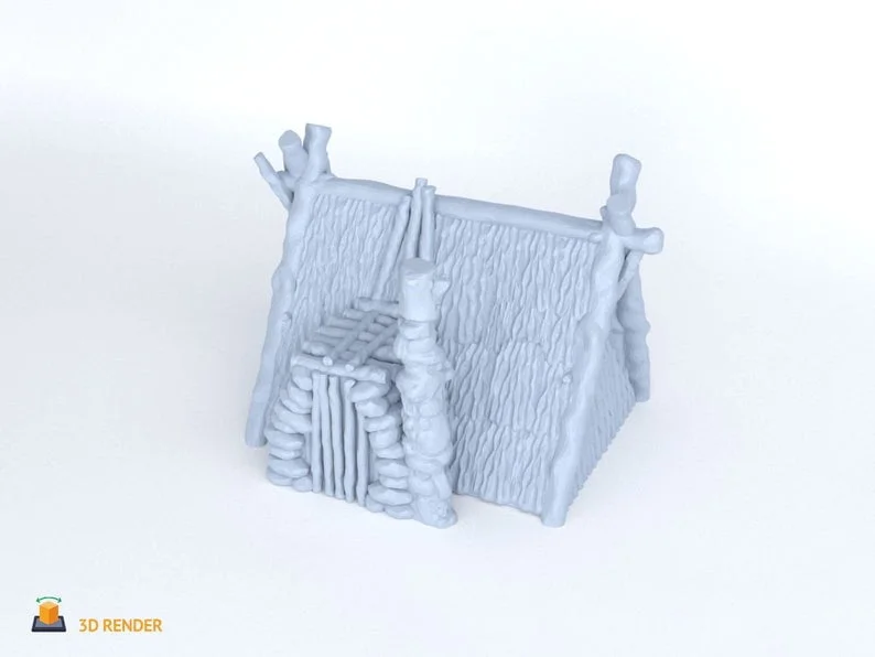 Miniatur-Goblin-Hütte für deine Goblin- oder Barbaren-Szenerie. Es ist für 28mm-32mm (oder „Heroic“ Maßstab“) Gaming skaliert und sind ideal für Wargaming oder für scenics in Ihrem RPG Begegnungen. Dieses Stück ist so konzipiert, dass es in 1″-Rasterzellen passt, wenn du eine Rasterkarte verwendest, und es kann als Streugelände in „Free Range“-Spielen abgeworfen werden.