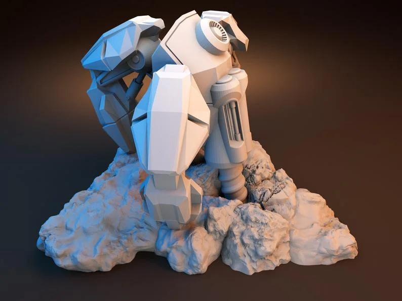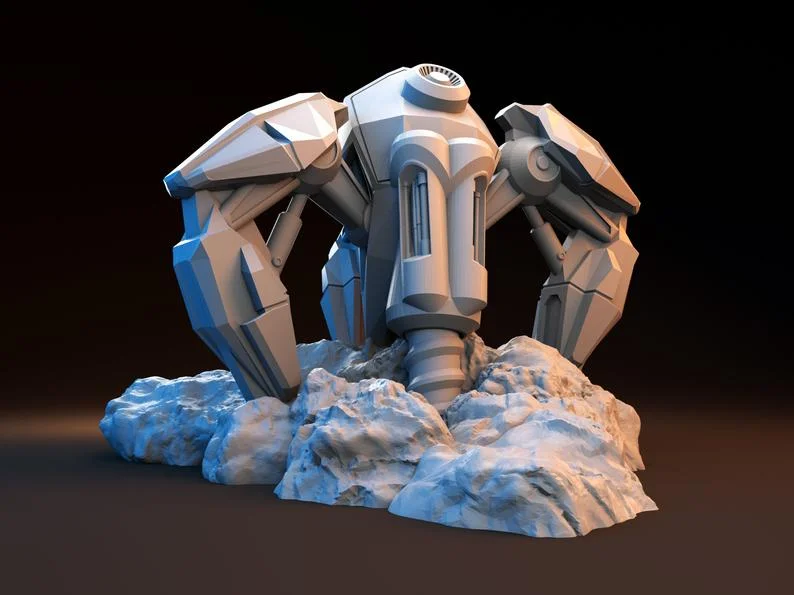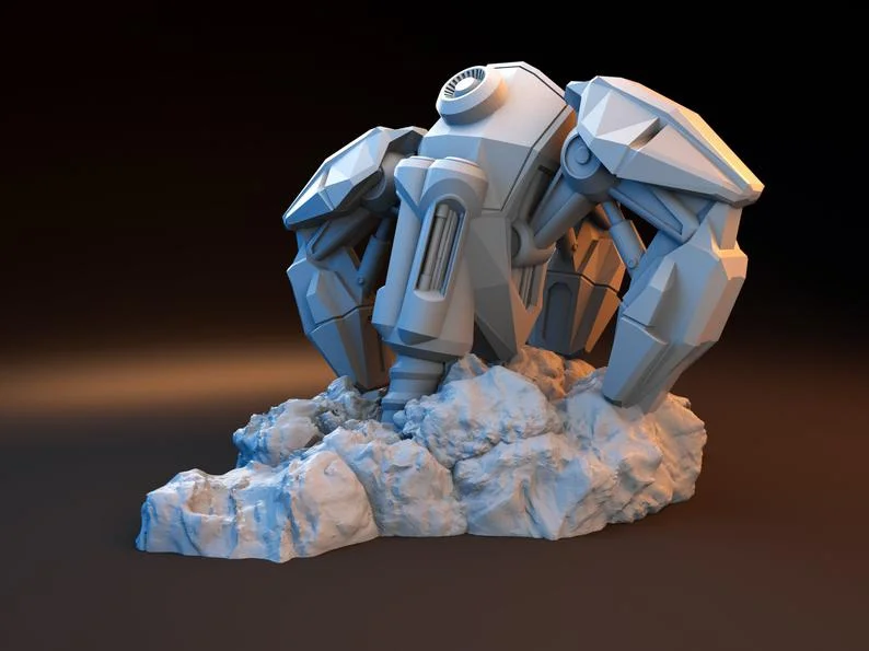 Der automatische Mineralienextraktor ist ein perfektes Stück für Ihre Sci-Fi Scatter Terrain Sammlung. Es ist ein einteiliges Design, das keine Montage erfordert. Es ist leicht zu bemalen und hat viele Details und Texturen, die es realistisch aussehen lassen. Er steht 98 mm hoch auf dem felsigen Sockel, mit dem Sie verschiedene Ebenen und Erhöhungen auf Ihrem Gelände schaffen können. Wenn Sie ihn im richtigen Winkel aufstellen, kann er Ihren Einheiten auch leichten Schutz bieten. Es sieht auf jeder Planetenoberfläche großartig aus, besonders auf felsigem oder wüstenartigem Terrain.