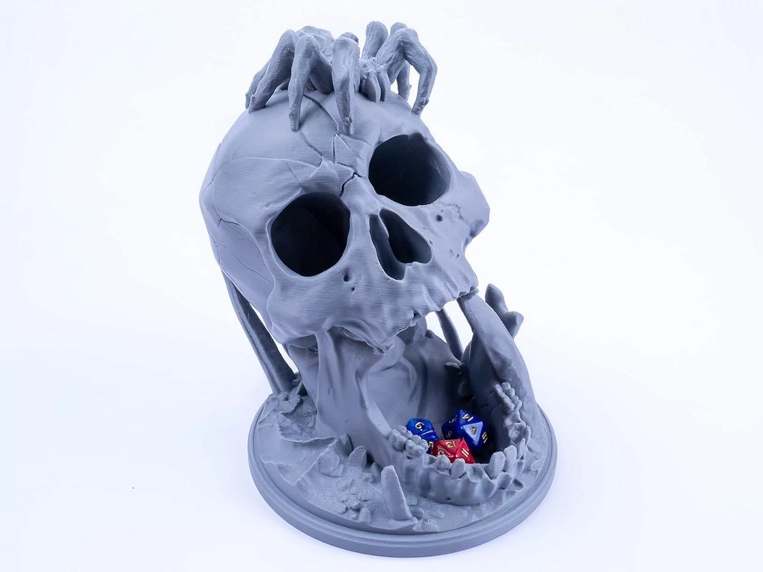 Einführung in die Der Schädel Würfelturm ist ein einzigartiges und lustiges Accessoire, das deine Tabletop-Spielsitzungen aufregender macht. Dieser Würfelturm zeigt ein realistisches Schädeldesign mit einer gruseligen Spinne, die auf seinem Kopf herumkrabbelt, was dem Würfelturm einen zusätzlichen Hauch von Horror und Geheimnis verleiht. Der Schädel hat ein finsteres Grinsen und hohle Augen, die dich anzustarren scheinen, während du würfelst. Die Spinne, die auf dem Kopf des Schädels herumkrabbelt, ist ein tolles Detail, das diesen Turm von anderen abhebt.