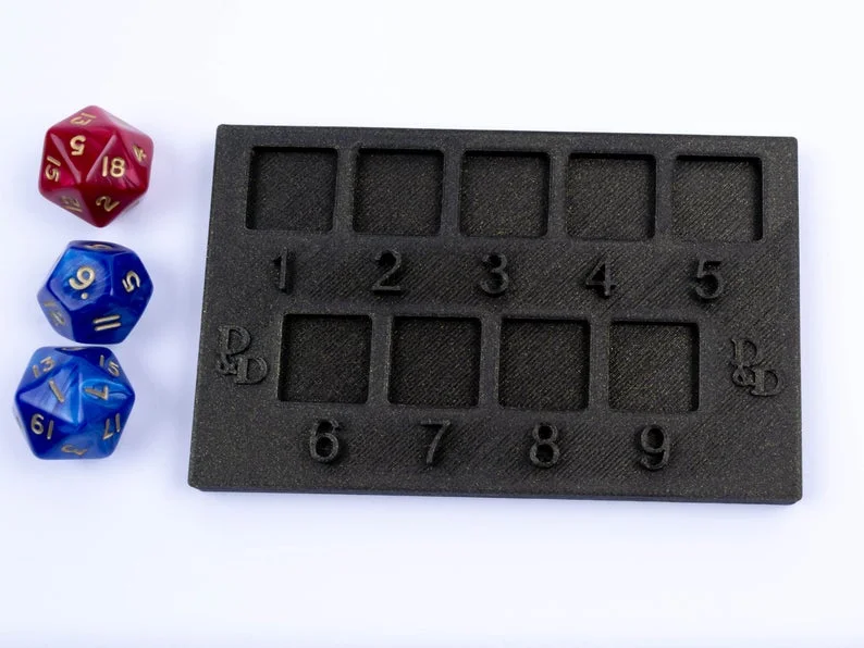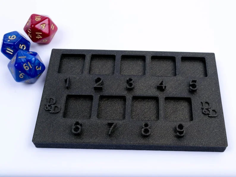 ? D&D Spell Slot Tray that fits 9 D6. Smooth rotation showing how many spells you have left.