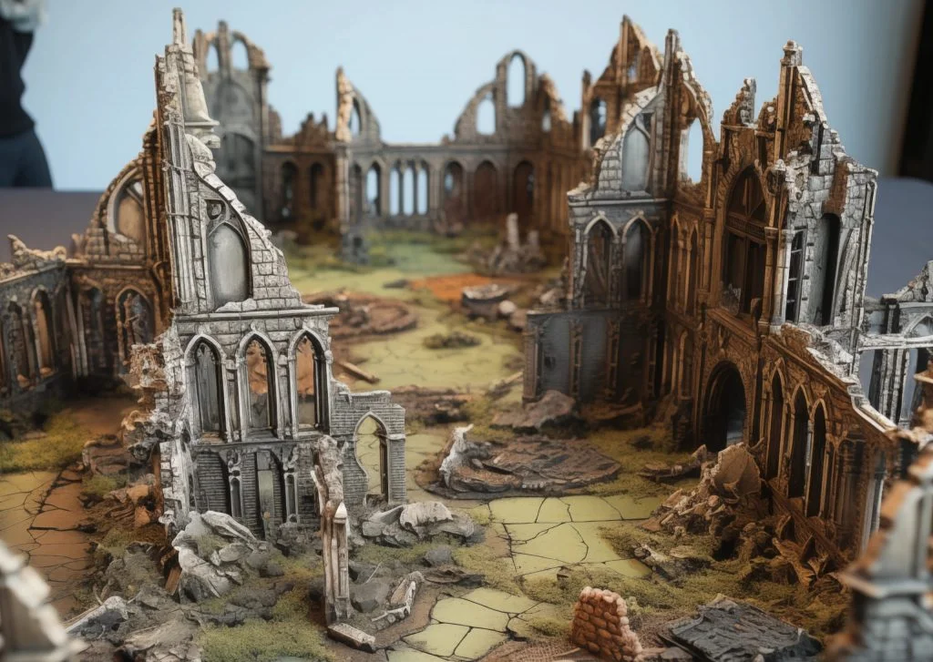 There’s something eerily beautiful about a 28mm gothic city building ruins – an artistic tribute to an architectural marvel; it stands not as a replica but as homage—a testament that beauty can be found even in decay.