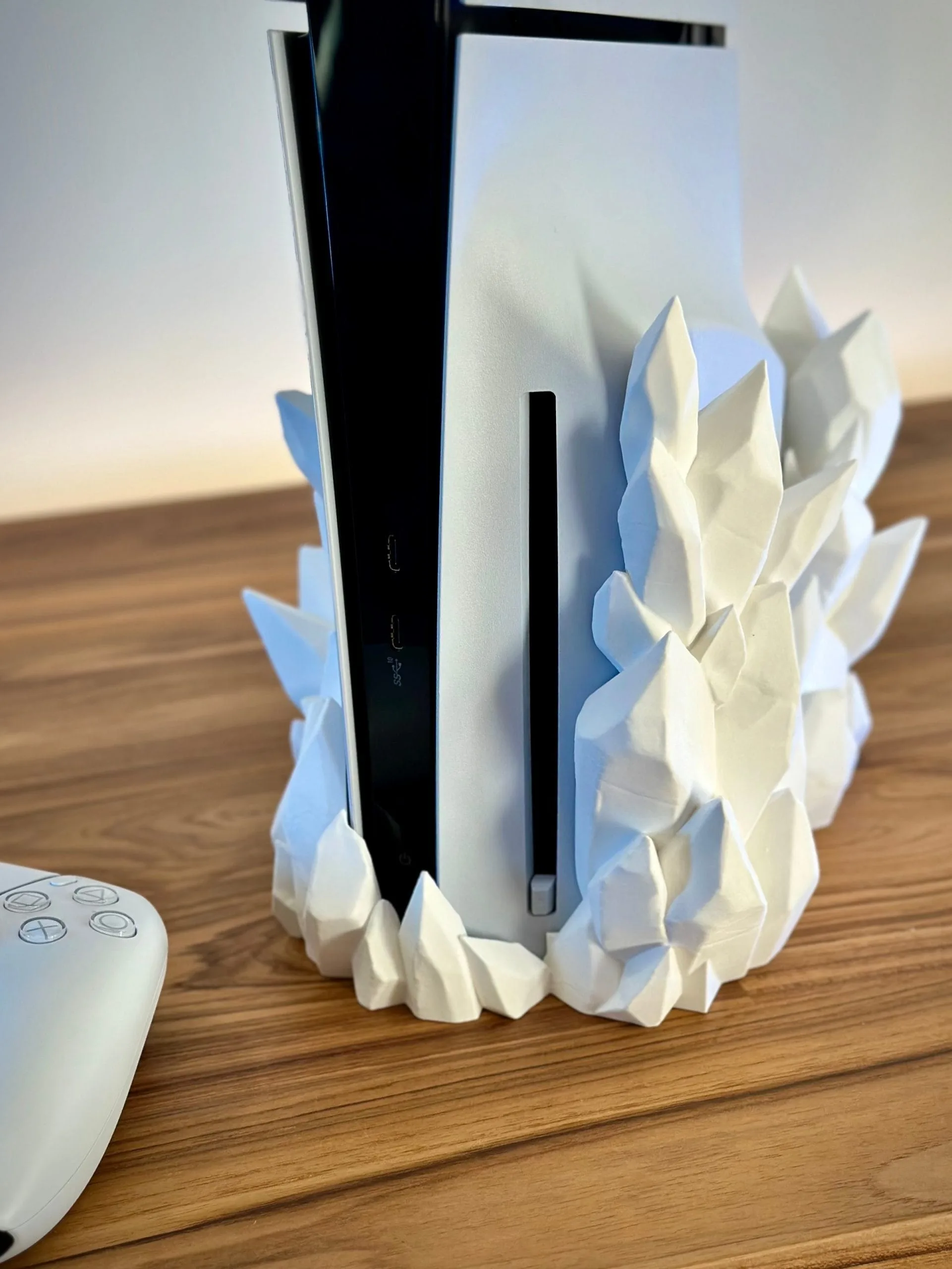 Crafted with a sturdy, single-block 3D printed design, the Crystal Stand provides a firm and secure base for your PS5 Slim. No matter how intense your in-game battles get, the stand ensures your console remains stable and protected. The wide footprint also contributes to its unwavering stability, preventing accidental bumps or movements from toppling your precious PlayStation.