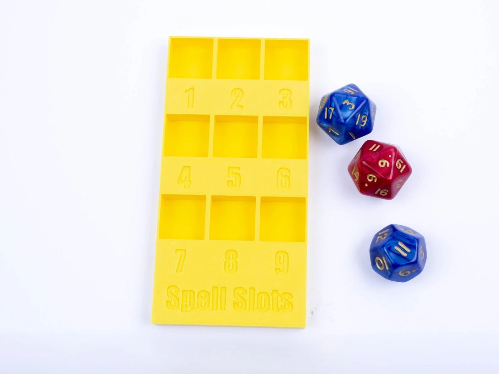 ? This D&D Spell Slot Tray fits 9 D6. Smooth rotation showing how many spells you have left for your character.