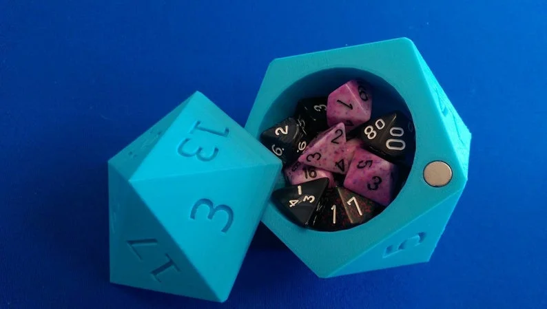 Store your gaming dice in this awesome D20 shaped die of holding dice box model which can be fitted with 8mm x 3mm magnets (due to shipping restrictions magnets are NOT included).