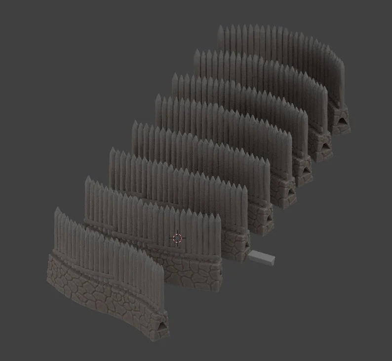 This is a set of 8 walls with irregular stone work and holes for the pin in each end (7 pins included). This palisade is perfect to surround your fantasy village.
