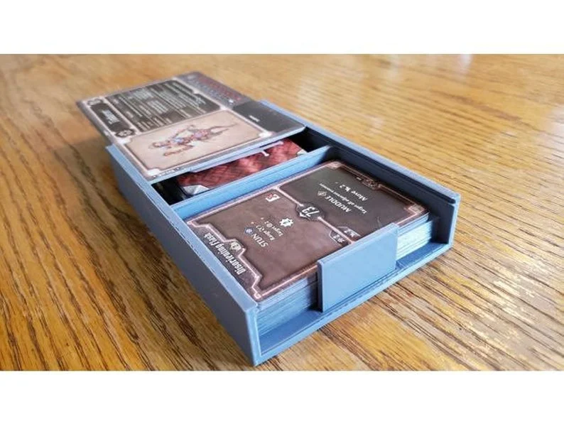 You can set your character board on top and slide your lost/discarded cards underneath during play. There is the character box that allows you to store all character’s things (except mini and character tokens) The character board can be used as a lid for this item.